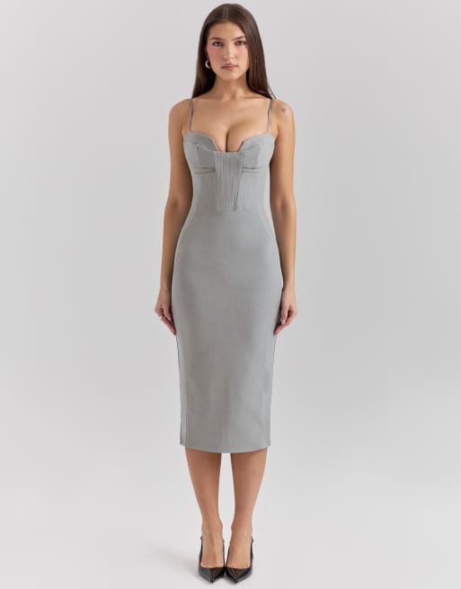 House of CB Kiki mesh panelled bodycon midi dress in light grey