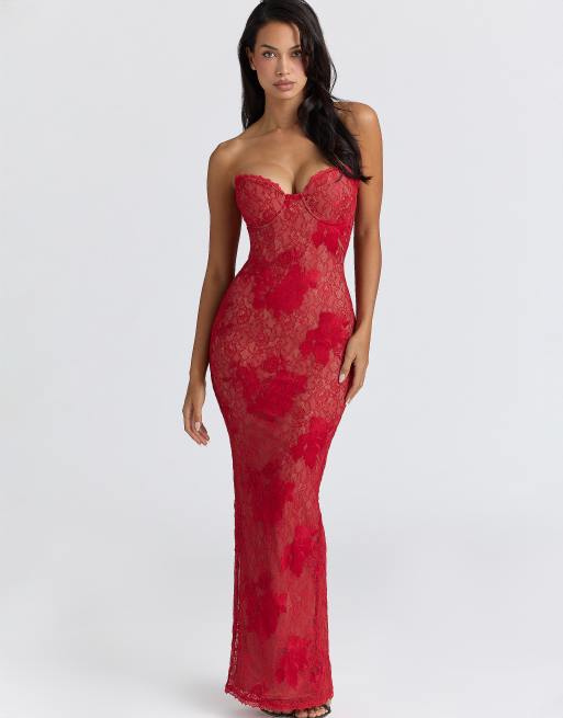 House of CB Lucienne red lace embroidered maxi dress - limited edition in red