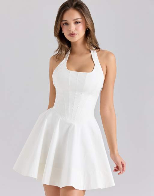 House of CB Sasha stretch cotton halter neck mini dress in white