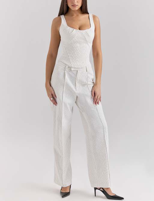 House of CB Selma white pinstripe boned corset top in white pinstripe