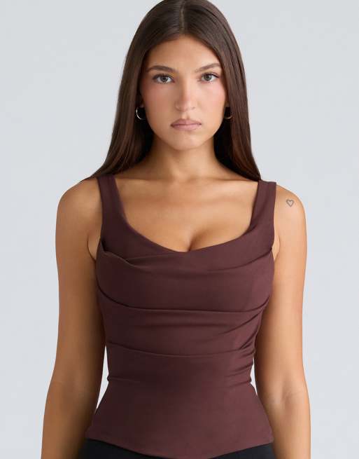 House of CB The drape neck chocolate corset top in chocolate