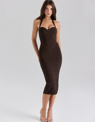 House of CB the supermodel halter midi bandage dress in chocolat