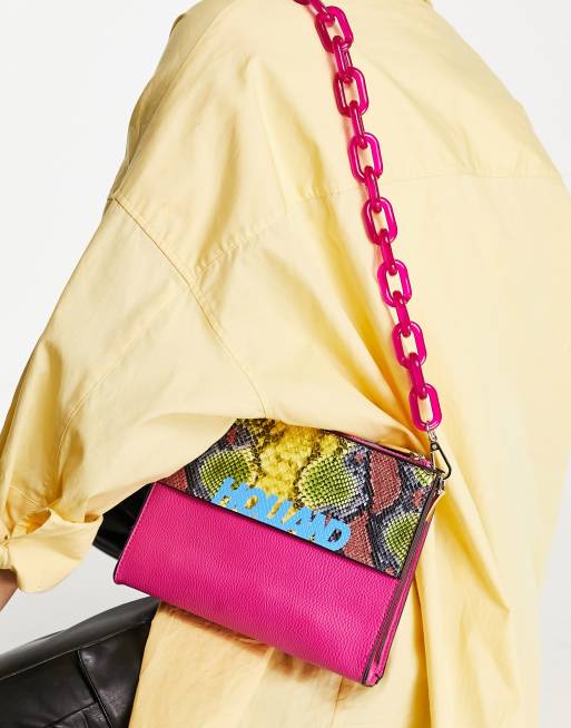 House of Holland shoulder bag with chain strap croc print bag in pink