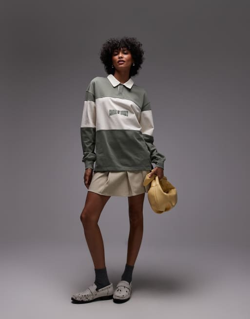 House of Sunny power logo long sleeve rugby top in sage green