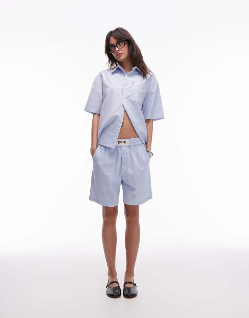 House of Sunny seersucker box fit shorts co-ord in multi blue