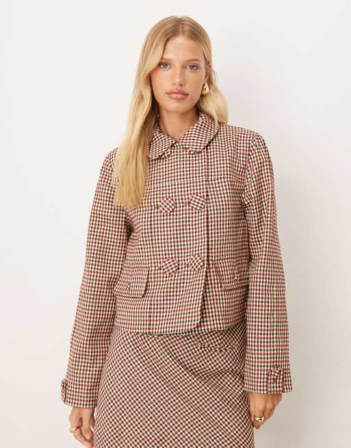 House of Sunny the marie short button detail overcoat in multi check co-ord