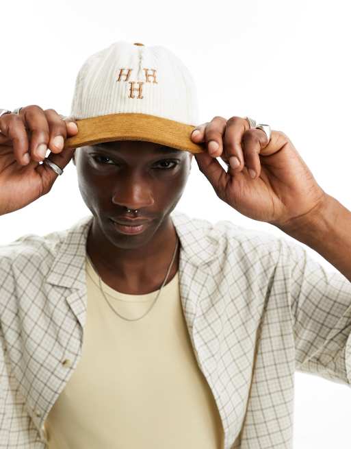 HUF hat trick snapback cap in white corduroy and brown peak