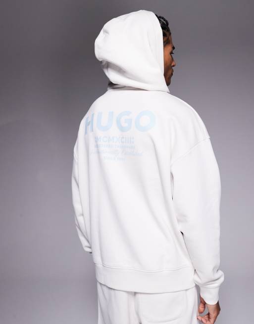 Hugo Blue co-ord loose fit hoodie in stone with blue logo