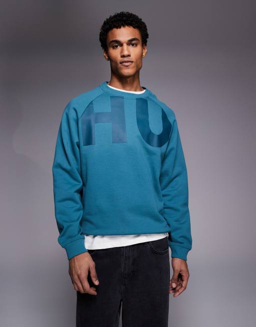 HUGO BLUE Nalfcrew large logo sweatshirt in teal