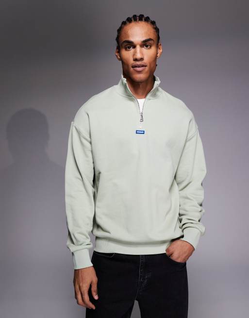 HUGO BLUE neeler half zip sweatshirt in light green