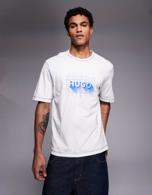 HUGO BLUE Nothal graphic chest logo t-shirt in white