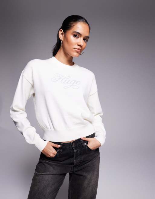 HUGO BLUE Slogix script logo knit jumper in cream