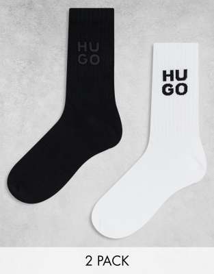 Hugo Bodywear 2 pack rib edge logo socks in black and white