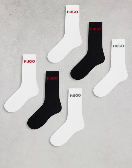 HUGO Bodywear 6-pack logo socks in black and white