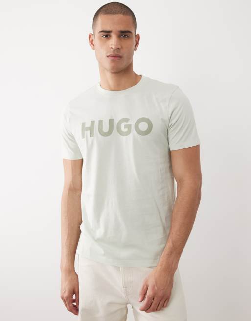 HUGO Red cotton jersey logo print t-shirt in light green