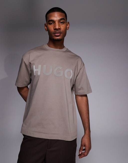 HUGO Red cotton jersey t-shirt with reflective logo in brown
