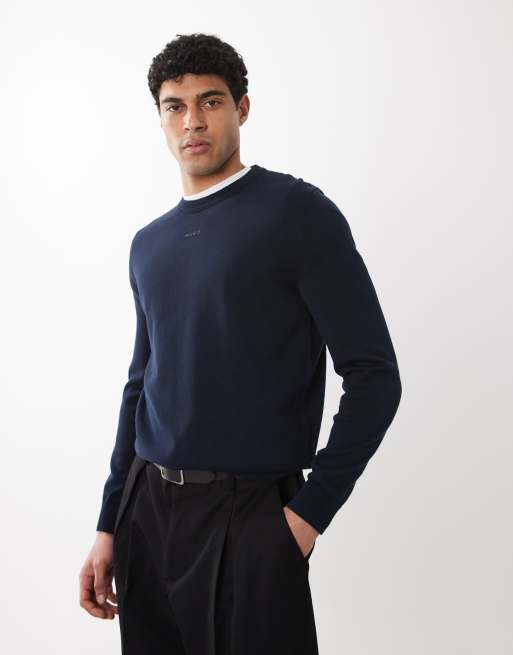 Hugo Red slim long sleeve knitted jumper in navy