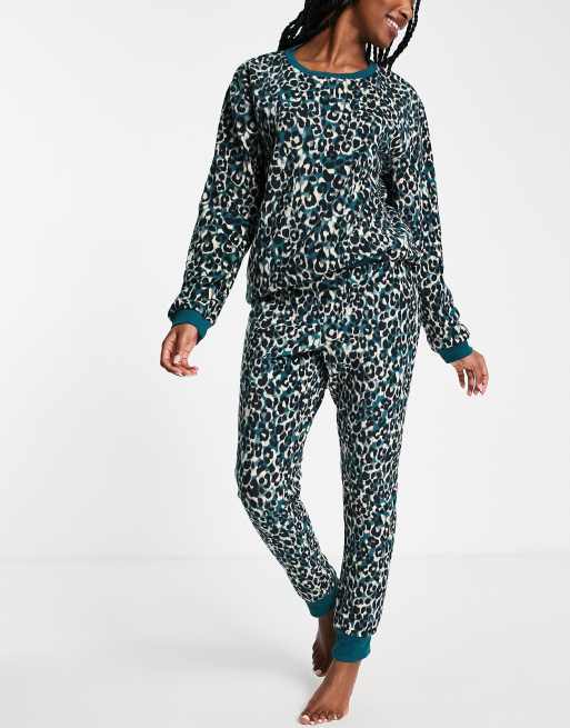 Hunkemoller micro fleece cosy pyjamas in a bag in blue leopard print