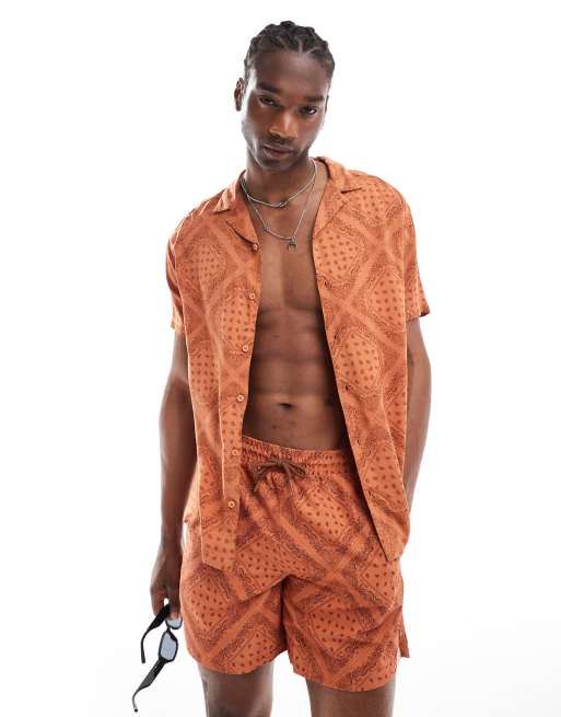 Hunky Trunks diamond paisley print beach shirt co ord in rust