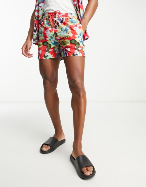 Hunky Trunks swim shorts in red abstract print