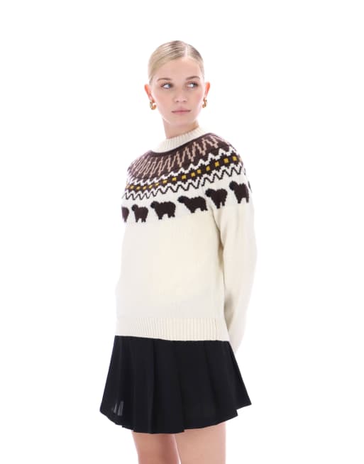 Hunter Ashie crew fair isle knit in white