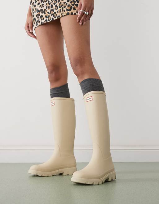 Hunter Downpour tall wellington boots in beige