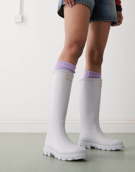 Hunter Downpour tall wellington boots in light grey