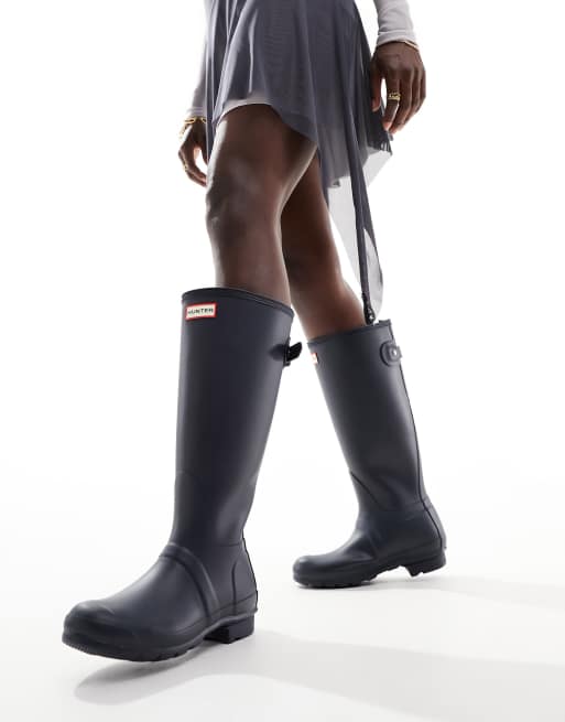 Hunter Original tall back adjustable wellington boot in navy
