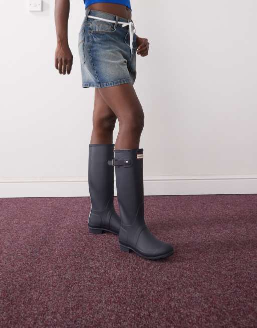 Hunter Original tall wellington boots in gingham navy
