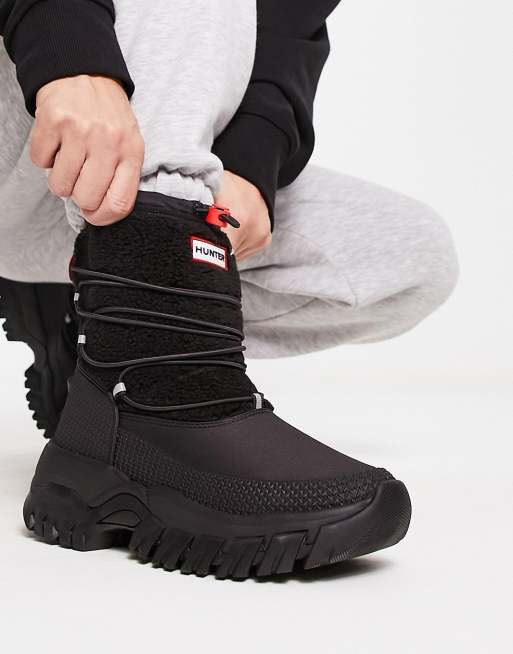 Hunter original wanderer short sherpa snow boot in black