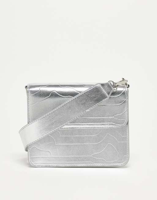 Hvisk Cayman vegan leather metallic cross body bag in textured silver