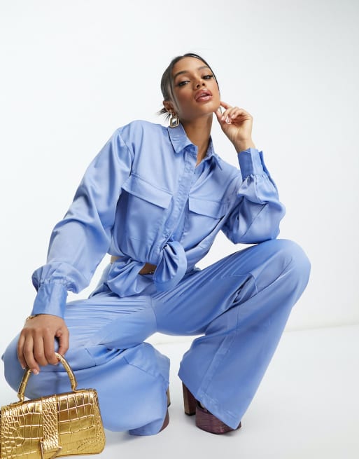 I Saw It First satin utility co-ord in blue