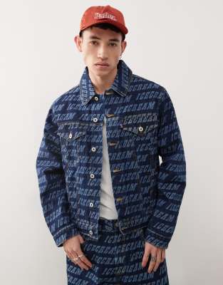 ICECREAM monogram denim trucker jacket co-ord in mid wash blue