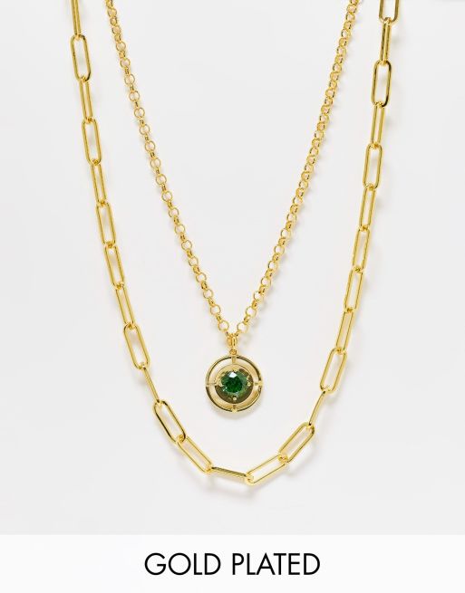 Image Gang emerald 18k gold plated compass layer chain