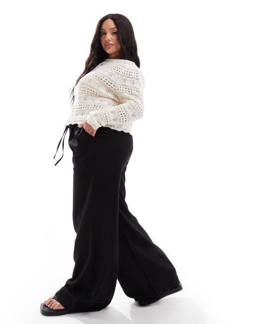 In The Style Plus linen mix wide leg drawstring trousers in black