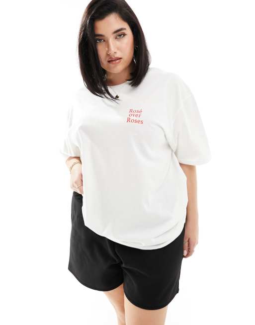 In The Style Plus Rosé over Roses slogan t-shirt in white