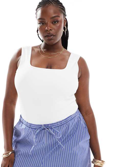 In The Style Plus sculpt and control scoop neck bodysuit in white