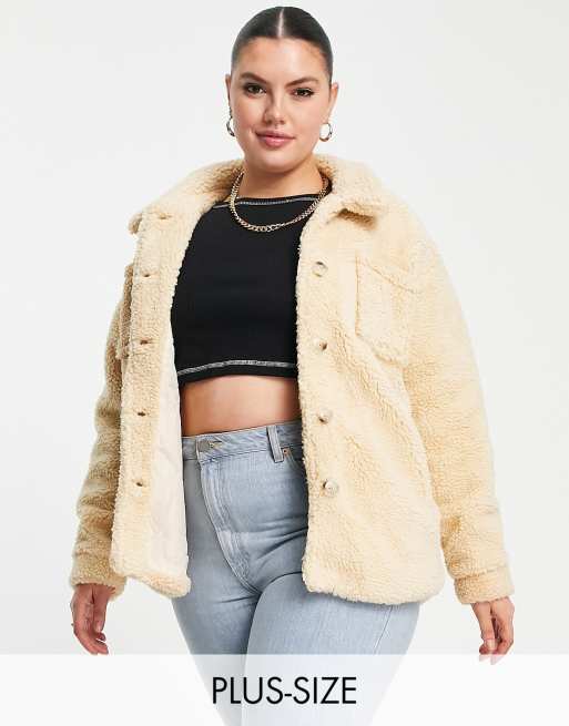 In The Style Plus x Billie Faiers teddy shacket in stone