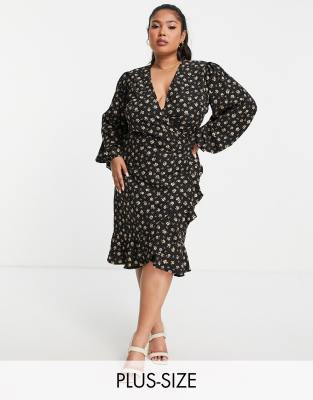 In The Style Plus x Carys Whittaker wrap front midi dress in floral print