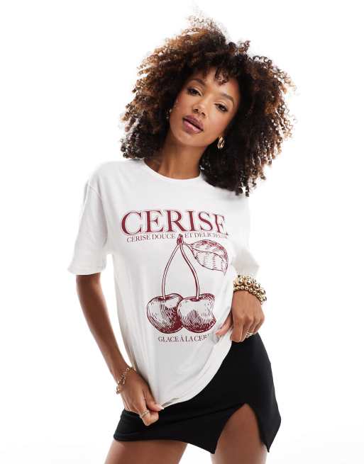 In The Style cherry motif t-shirt in white
