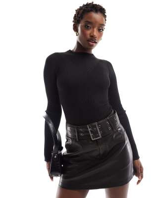 In The Style crew neck long sleeve knitted bodysuit in black