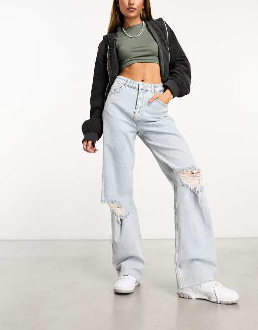 In The Style exclusive distressed wide leg jeans in light blue wash