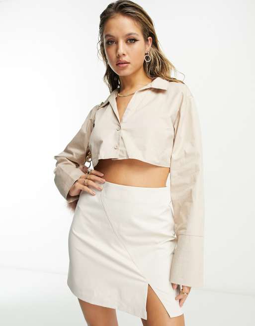 In The Style side split mini skirt in cream