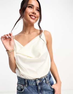 In The Style x Jac Jossa satin cowl neck body in cream