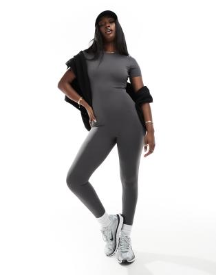In The Style x Perrie Sian short sleeve unitard in charcoal