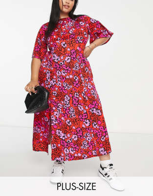Influence Plus flutter sleeve midi tea dress in red and pink floral