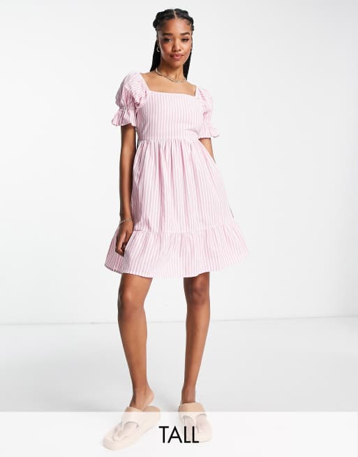 Influence Tall poplin milkmaid mini dress in pink gingham