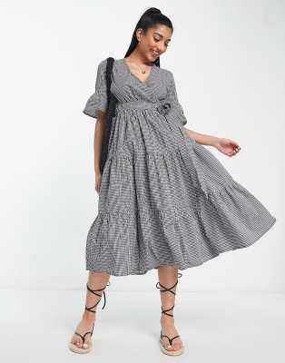 Influence cotton poplin wrap dress in gingham