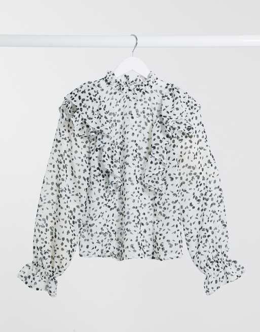 Influence frill front blouse in abstract print