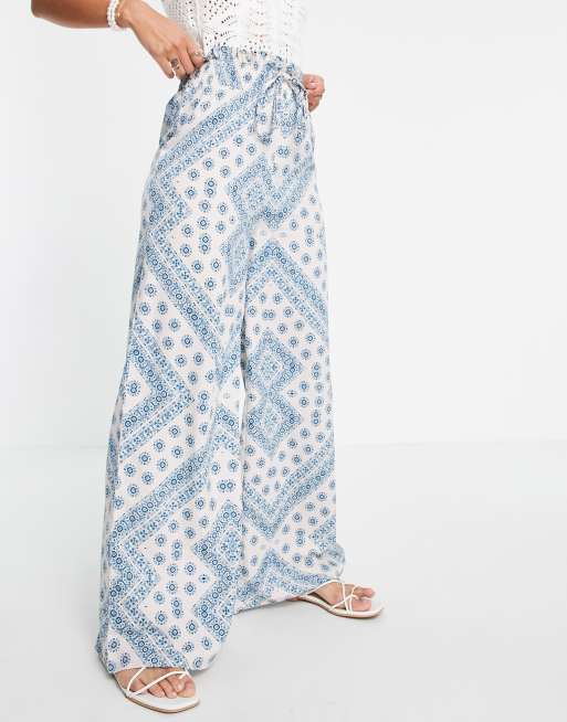 Influence wide leg trousers in blue and white
